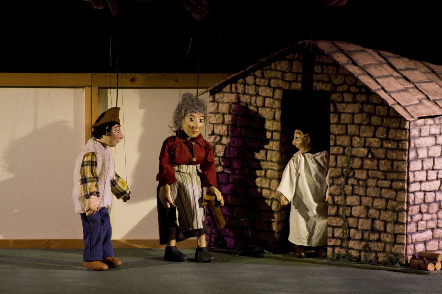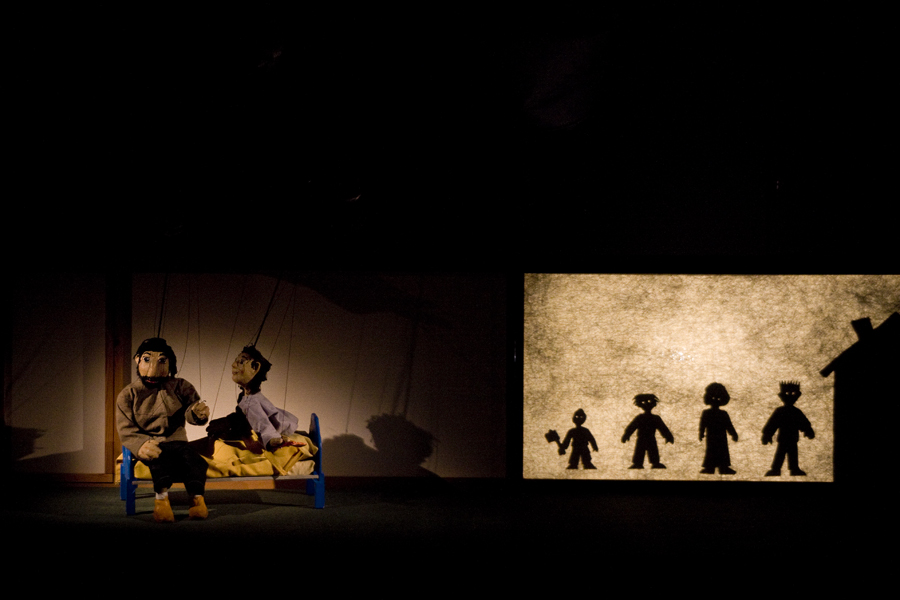 Sobre aquest sobreescenari, l’Oliu escolta el conte que li explica el seu pare abans d’anar a dormir, que, tal com diu “Cañellas” al començament, “és una història dintre d’un conte, i un conte dintre d’una història”. El relat del pare conté tot d’elements simbòlics tradicionals: la caseta del bosc, tres germans, el foc…, i va a parar, efectivament, en una recreació del mateix fet de narrar.