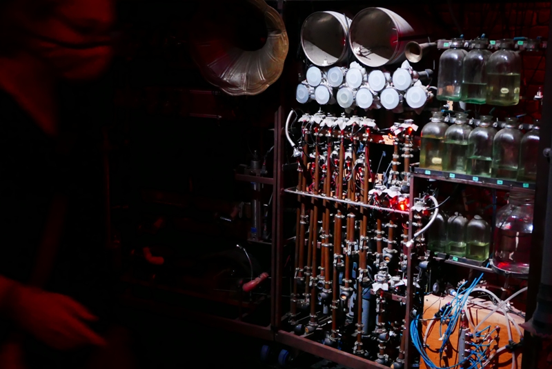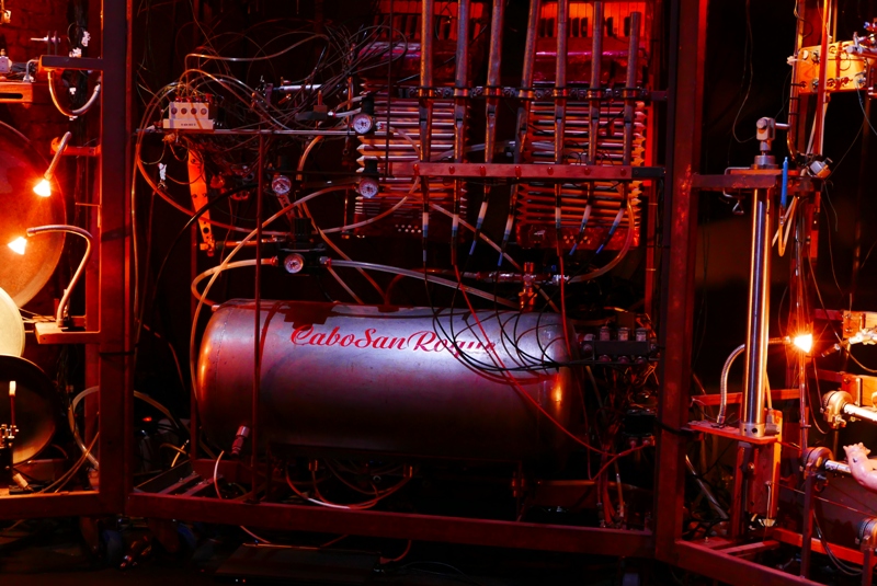 El soterrani del teatre acull fins a mig octubre aquesta creació, que és una exposició d’artificis que esdevenen instruments únics i surrealistes amb els quals, a través de mecanismes, activacions, motors, temporitzadors i autòmats, realitzen un concert amb estris com paelles, martells, vàlvules, ampolles, eines, màquines descriure, olles, etc.