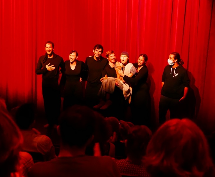 Cinc intèrprets que són manipuladors, que són ballarins i que es fusionen aconseguint ésser un sol batec que respira coordinat durant tota l’obra. L’espectacle brilla amb una excel·lent manipulació dels pocs elements que se simplifiquen en 2 titelles. El domini de la tècnica i el llenguatge corporal, que són els factors més importants, conjuntament amb el 6è membre de la companyia, que fa un treball brillant des de la cabina tècnica, fan que l’espectacle acabi hipnotitzant tota platea on es pugui veure. I així va passar també al teatre occità.