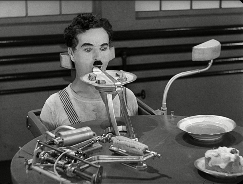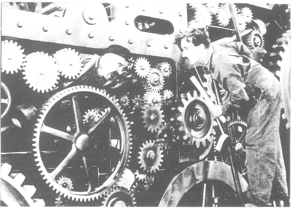 La mundialment famosa Temps moderns és una pel·lícula on, -des de la comicitat i des d’una concatenació de gags- Charles Chaplin articula una crítica en contra d’una societat molt automatitzada, molt mecanitzada en detriment d’unes relacions més humanes i més favorables a la mal tractada classe treballadora.