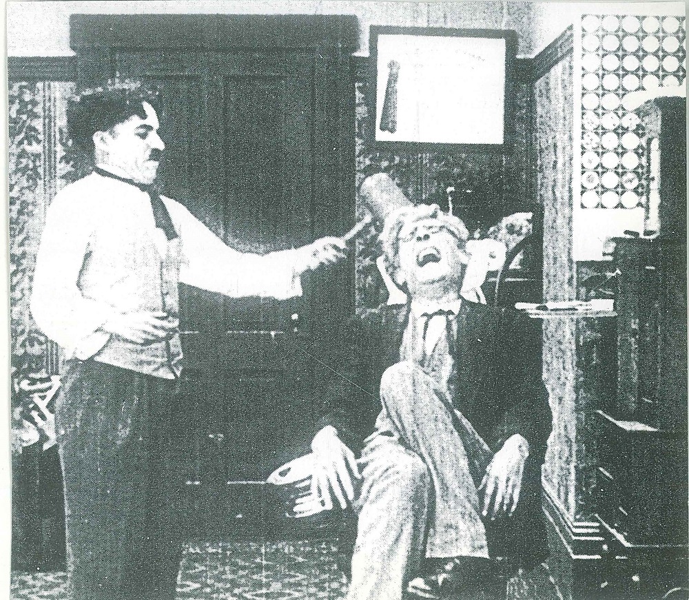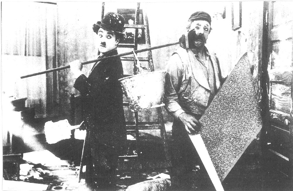 Imatge ben emparentada, la que acabem de veure, amb el món dels titelles. L’enganxifós raspall d’empaperador de Charlot, contacta amb el rostre del seu company de feina… Un dels molts moments on -sense necessitat de paraules i diàlegs- es posa de manifest la comicitat sorgida del talent made in Charles Chaplin .