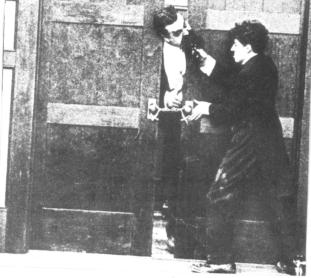 El cap de l’actor Eric Campbell, apareix empresonat entre els dos fulls d’una porta, mentre Charlot l’estira per la barba. Una imatge que podria ser del tot transferible a un espectacle de titelles.