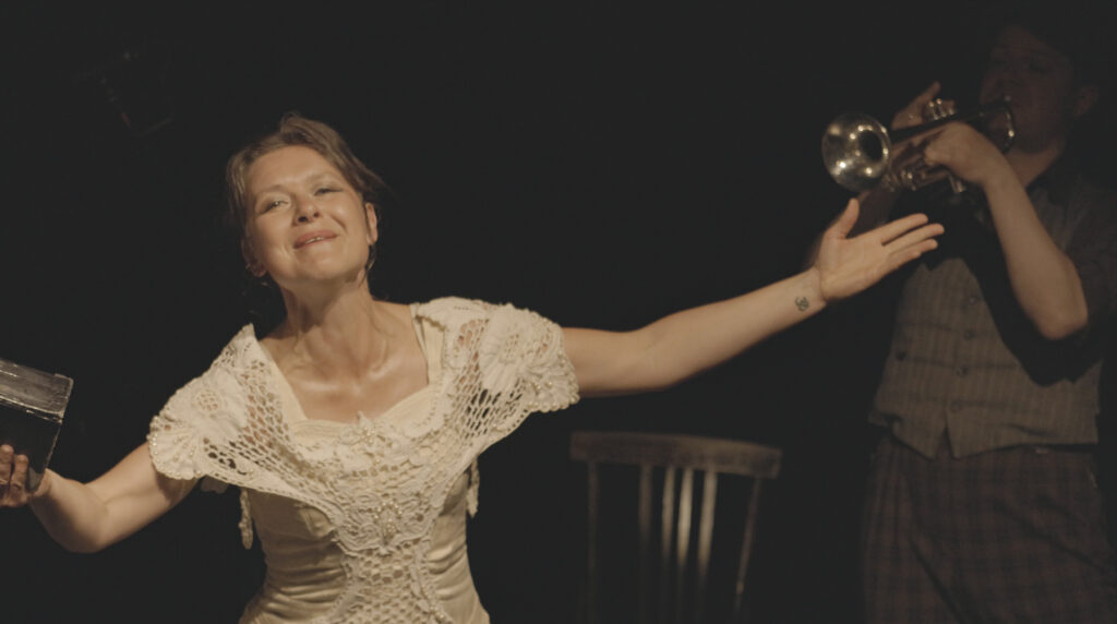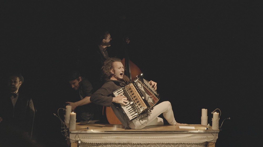Hem posat la festa en primer lloc perquè crec que és el gran punt de partida de la proposta: convertir un funeral en una festa d’exaltació de la memòria i de la mort entesa com complement indispensable a la vida, dels records, de l’amor i de la intensitat vital de la música que neix espontàniament del cos i de la vida. I per fer-ho, Matija s’ha envoltat d’un equip realment excepcional de músics que també són actors, començant per la protagonista, Anička Bubníková, en el paper d’Anna Karenina i violoncel·lista. Val la pena citar-los a tots, donada l’alta qualitat dels mateixos com a músics i com actors: Pavol Smolárik (Eslovàquia) al contrabaix; Jan Meduna (Txèquia), trompeta; Jiří N. Jelínek (Txèquia), violí; Ivo Sedláček (Txèquia), caixó, baterista i percussionista; i Matija Solce en l’acordió i en el paper del difunt que ressuscita.