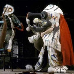 Titelles ninot construïts artesanalment per la companyia La Claca seguint les indicacions del propi Miró. Titelles ninot inspirats en les sèries de dibuixos de Miró titulades Ubú i Ubú a les Balears, les quals havien nascut inspirades en la peça teatral d’Alfred Jarry Ubú Rei . Del teatre a la plàstica i de la plàstica al teatre per un camí de creativitat.