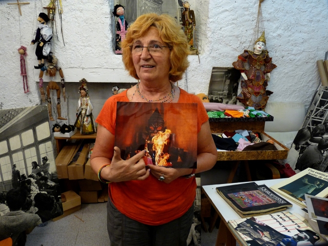 Des de que li hem plantejat la nostra intenció de parlar amb ella per a la Revolta dels Titelles, no ens ha deixat de repetir aquesta frase, dita amb tota sinceritat i sense cap falsa modèstia. I és que precisament una de les característiques que més destaca de la personalitat de Teresa Travieso és la humilitat, una condició que s’afirma a través de la seva discreció. I potser és aquesta contenció en el tracte i en el seu quefer professional, el secret de la fascinació que desperta aquesta persona de taller que viu concentrada en les marionetes i en la seva construcció. És la fascinació que s’amaga sempre darrera d’aquell que crea des del silenci i la discreció de la rebotiga, com si el fet de passar el dia entre ninots que neixen de les seves mans li donés una companyia màgica i una duplicitat misteriosa.