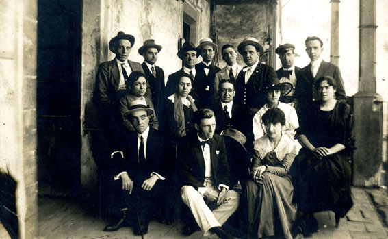 Adrià Gual (dret a darrere, el tercer per l'esquerra), amb una colla d'alumnes.