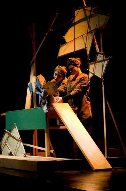 També els decorats, que són simples fustes més o menys colorades que van canviant de lloc, o els elements que representen les aigües (de plàstic), estan fets a partir del mateix principi d’abstracció. I és aquí on es produeix el miracle del teatre: tots aquests elements que pertanyen a una estètica madura i distanciada, agafen de sobte vida gràcies a l’animació que els hi donen les dues manipuladores. Ingrid Teixidó a càrrec del titella i la veu de l’elefant, i Clara Olmo a càrrec dels demés animals que van sortint, són les dues magues que aconsegueixen donar vida i ànima a cada una de les figures. I ho fan gràcies a un superb treball de veu d’una gran categoria, i a una seductora dolçor en llur actuació i en l’actitud que tenen envers els distints animals posats en escena.