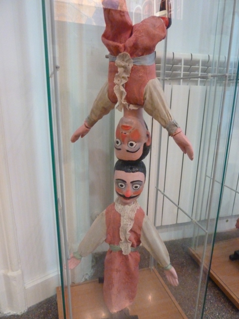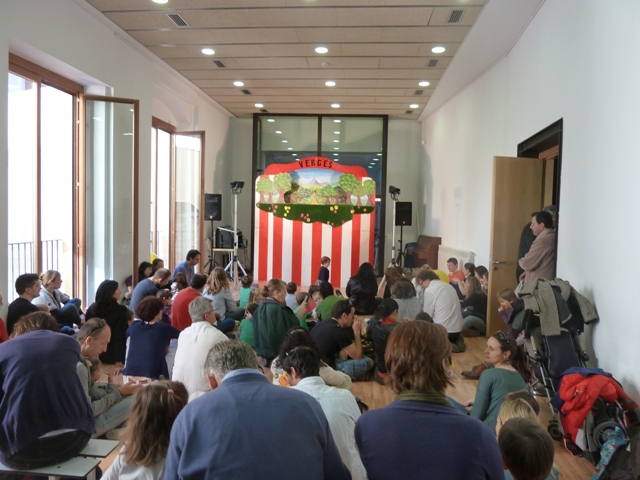 L’adequació d’una sala noble de la Casa dels Entremesos a la Plaça Beates nº 2 –la petita i preciosa sala oval del primer pis– per a exhibir-hi una mostra fixa de titelles de la família Vergés (tres generacions de titellaires, veure aquí) en la que hi ha també un dels seus castellets més antics, és una notícia que ha passat desapercebuda però que per a nosaltres té una gran importància. Simplement pel fet d’ajuntar dins d’una mateix concepte de Patrimoni els grans titelles de carrer que s’utilitzen a les festes populars catalanes, i els titelles tradicionals catalans a càrrec de titellaires professionals. Són dues realitats diferents, això és cert, tant per la seva funció com per la seva sociologia, però alhora profundament emparentades: les dues formes defineixen des de perspectives diferents el nostre imaginari col·lectiu i popular.