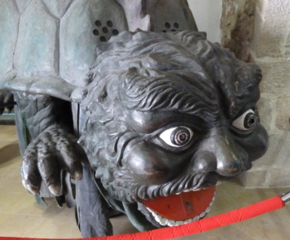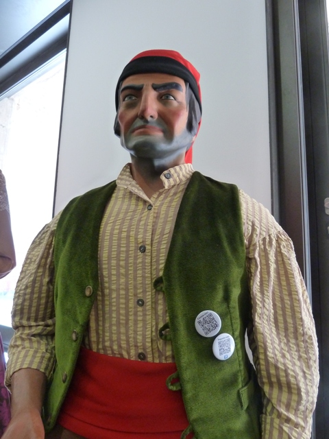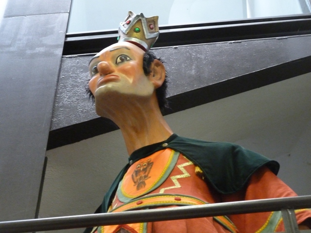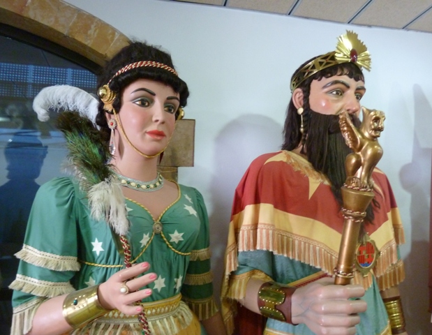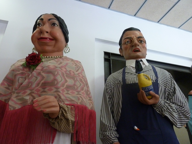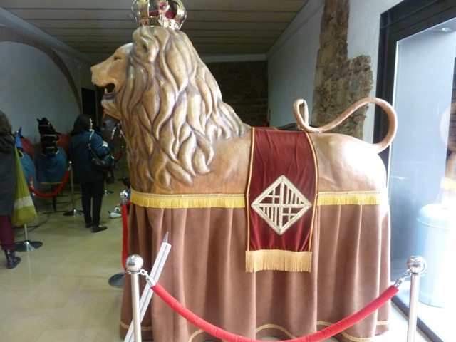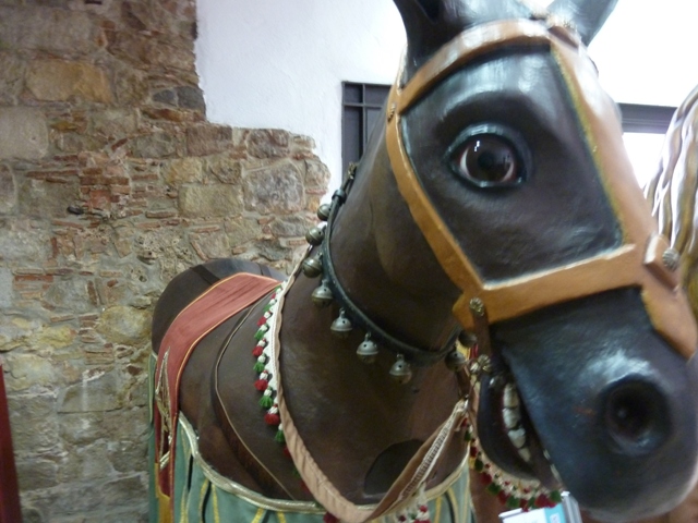 Com es pot veure, un origen molt teatral i de profundes arrels populars. Tornant a la visita, haig de dir que la col·lecció de figures exposades és realment impactant. Allà estan quasi bé tots els gegants, bèsties i bestioles que han marcat la nostra infància. En manquen alguns (com els Gegants de la Ciutat, que viuen al Palau de la Virreina) però la representació és suficient com per merèixer una visita. La col·locació és molt bona i tots ells es deixen mirar sense perdre la dignitat, ni ells ni nosaltres. És a dir, gaudeixen d’un espai noble i suficient i, llevat dels més moderns i de les bèsties, mantenen una distància que lliga amb el seu rang de reialeses estimades pel poble. Interessant la secció de les bèsties: es troben en una mateixa sala els cavallets cotoners, la Mulassa, el Bou, l’Àguila, el Drac o la Tarasca, i un diria que se sent l’olor típica dels estables o de les gàbies dels lleons del Zoològic, tot i que per enlloc es veu ni un bri de palla.