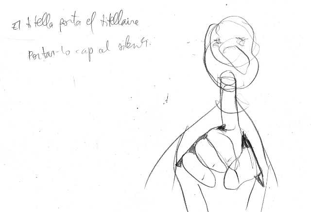 Per això en Luca diu que és necessari netejar l’excés de gesticulació, fins arribar al moviment essencial. Aquí s’hi arriba, primer de tot, netejant el cap del titellaire, ja que els prejudicis –i la deformació de la tradició– sempre han fet que la tendència primera en agafar un titella sigui moure’l molt i contínuament.