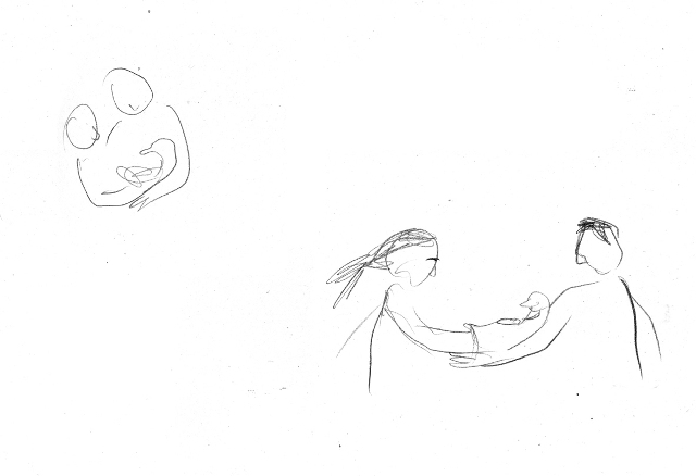 – Pulcinella i la Mort tenen una filla. La filla veu com els pares es peguen contínuament, i això la traumatitza: La deixa muda.