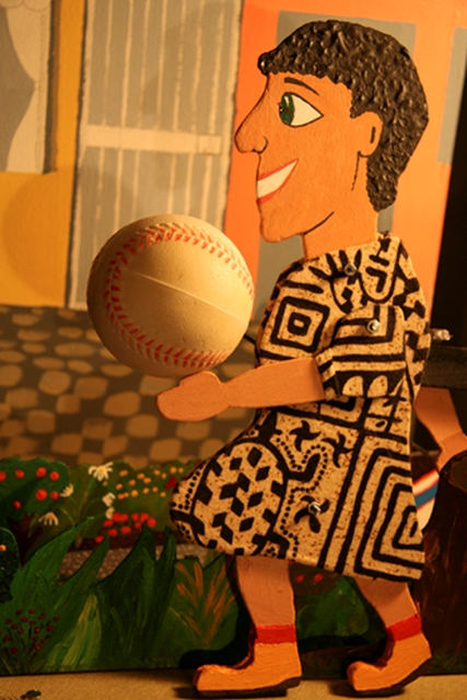 Néstor Navarro planteja l’obra amb un esquema de manipulació a la vista sobre taula i amb uns titelles especials, ja que són plans tot i que tenen una mica de gruix en estar compostos de dues làmines de fusta retallades que els permet així tenir diversos jocs de moviment a partir de simples mecanismes de manipulació. Els titelles, vestits amb roba enganxada als retalls plans, funcionen molt bé i es podria definir aquesta tècnica de “manipulació sobre taula de titelles plans a l’egípcia”, ja que se’ls veu sempre de costat com feien els egipcis en les seves pintures. Aquest recurs, que s’acosta al tipus de figures utilitzades pels antics teatrins de cartró, estableix una interessant distància amb els nens, en obligar-los a acceptar aquest codi visual que d’alguna manera és una abstracció dels titelles normals de tres dimensions. És com un estat intermedi entre el titella de taula i la silueta del teatre d’ombres, cosa per altra part que lliga molt bé amb el background i els referents titellaires propis d’en Néstor (molt marcats pel teatre d’ombres). Aquest oscil·lar entre la silueta i el titella és segurament allò que els fa més atractius, interessants i, en certa manera, exòtics: determina un ritme propi en el moviment i també una manera particular de relacionar-se el titellaire amb el públic. És a dir, es compleix aquell principi que diu que la poètica dels titelles ve determinada per la manera en què el manipulador mou i es relaciona amb la marioneta. En aquest cas, permet al titellaire distanciar-se quan li convé del públic (quan es considera el titella com una silueta de dues dimensions) o aproximar-s’hi des de la presumpció d’un titella normal de tres dimensions. Un joc per tant d’acostament i d’allunyament que possibilita adaptar-se molt bé al públic que li ha tocat al titellaire en sort, i a la vegada modular el ritme de la representació segons les exigències narratives de la història.