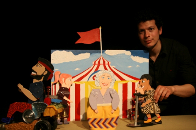 Néstor Navarro amb els seus titelles