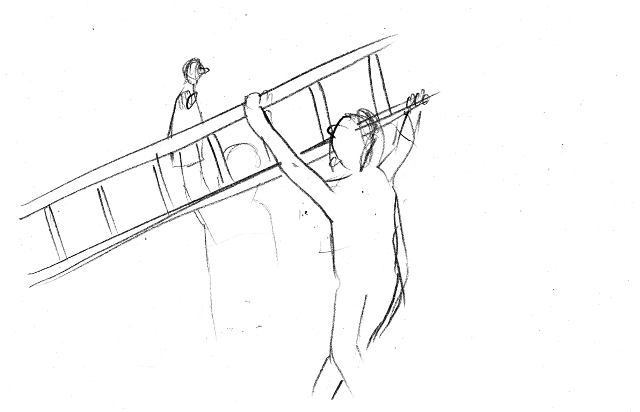 Així com al principi del curs en Luca ens va proposar d’utilitzar el nostre cos com a castellet, un altre dia l’exercici ha consistit en convertir un objecte en el marc d’acció del titella. Una escala, per exemple: Jugant per parelles, el ninot interacciona amb l’objecte com si aquell fos el seu món, mantenint les consignes de verticalitat, mirada i ritme. L’alteració de les proporcions ens desboca la imaginació.