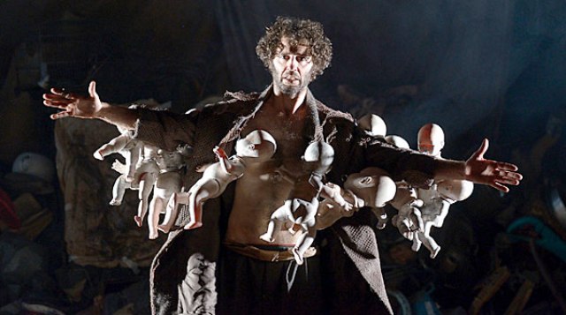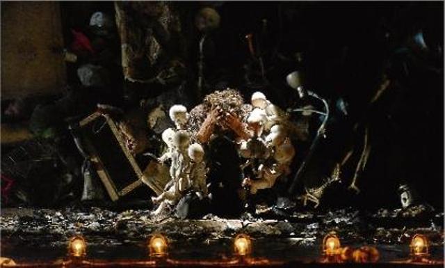 A l’espectacle hi ha titelles compartint el món de l’actor. Titelles que són com estranys i inquietants éssers proteics humans, sorgits de la deixalla, nascuts d’aquesta matèria mig orgànica, mig inorgànica. A les escenes finals, l’home haurà passat per una desoladora metamorfosi de degradació i el veurem transformat en una d’aquestes criatures modelades en la porqueria de l’abocador. Aturats en la pirueta més pessimista del discurs, potser podem entendre que l’home ja no serà únicament deixalla, sinó condemnat a un abisme pitjor: ser deixalla-titella.
