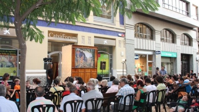 Funció de Titelles Vergés davant del Caixafòrum de Lleida, on es fan les representacions del Joc al Ninot.