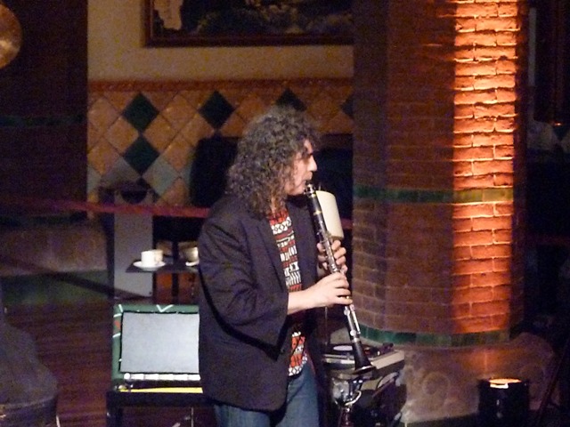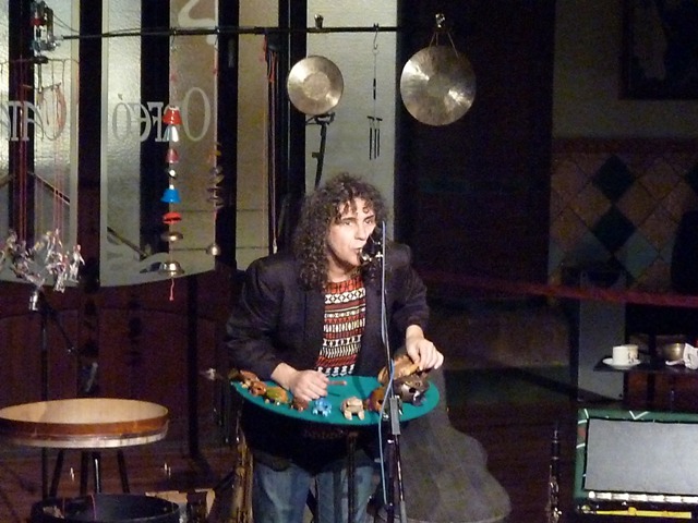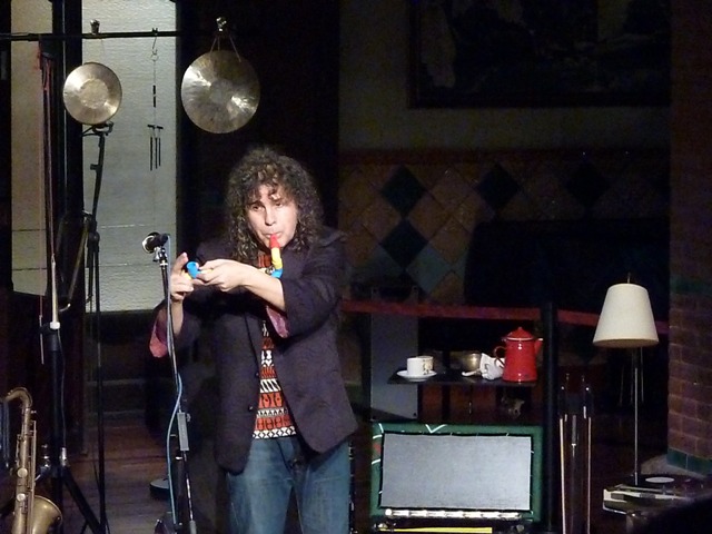 Però tornem al concert. Deixat el Corn, i ja en circulació les corrents tel·lúriques que l’oficiant volia despertar, les escampa distribuint entre el personal cassoles, paelles, tasses i plats de llautó, invitant-nos a crear el coixí sonor d’una primera improvisació amb el seu saxo tenor tan tronat però que sona tan bé. Una manera d’escalfar motors i posar-se ell a to, ja que per emprendre un concert en solitari d’aquestes característiques, cal estar en perfecte sintonia, amb un mateix i amb el públic.