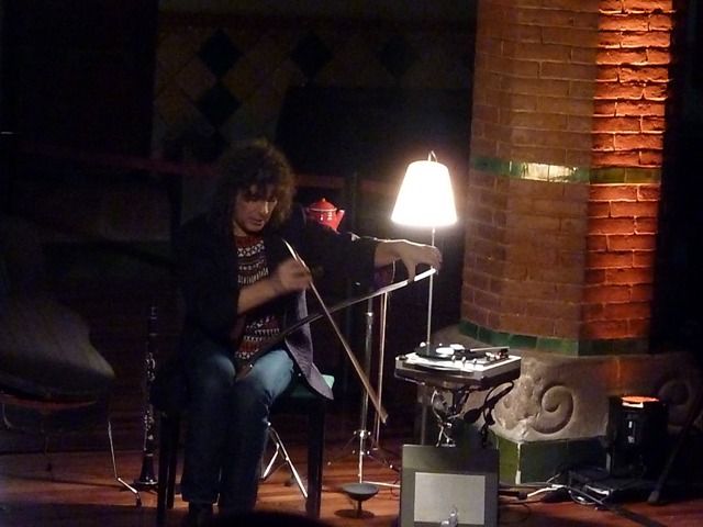 És impossible i seria absurd voler descriure tot el concert. Vaig veure diverses càmeres enregistrant-lo, de manera que ja hi hauran maneres de veure’l si algun dia es munten aquestes imatges. Dir però que la sessió va ser un constant crescendo envers el més exquisit refinament sonor i orquestral, ja que fos a causa del Loop o fos per efecte visual de la munió d’objectes i estris emprats, vam sortir d’allà amb la convicció de que havíem sentit una verdadera orquestra sonar, amb un únic director que també era l’executant, cosa força insòlita. Una orquestra per cert que té nom: la Orquestra Souvenir.