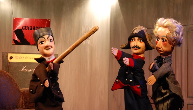 En Guignol té autor reconegut: Laurent Mourguet (1769-1844). Nascut el 1808, en plena convulsió napoleònica, Guignol de seguida connecta amb les necessitats d’un públic que vol passar pàgina a l’Ancien Régime. Si al principi compleix funcions de comentador de l’actualitat, cap a finals del XIX es creix en la paròdia, un gènere molt de l’època. Malgrat que s’ha utilitzat el seu nom per a mil situacions diferents –com el Grand Guignol, un teatre d’actors centrat en la criminologia, el sadisme i la truculència obert a París a la zona de Pigalle fins l’any 1963–, Guignol com a personatge segueix gaudint a Lió y a París d’una salut molt bona.