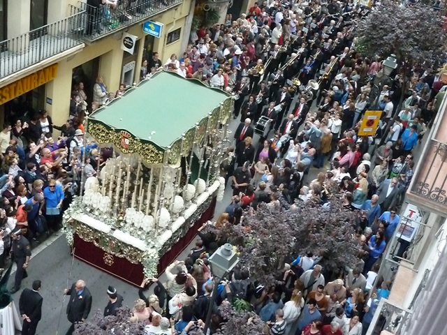 Verge de la Macarena de l’Església de Sant Agustí, de Barcelona, al carrer Hospital, el Divendres Sant.