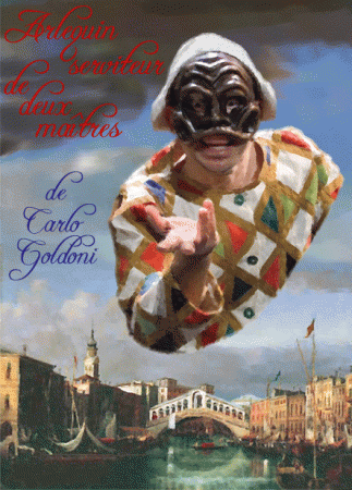 Arlequí i Venècia. Cartell de l’espectacle « Arlequin Serviteur de deux Maîtres » de Carlo GOLDONI, de la companyia. La Cie Le Théâtre du Fou.
