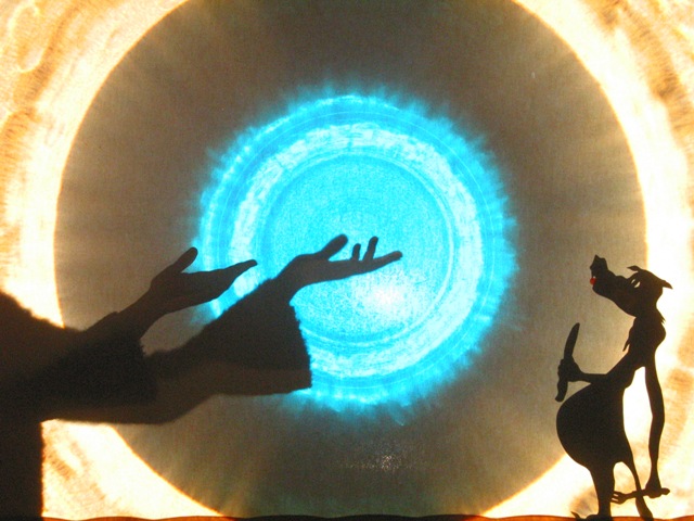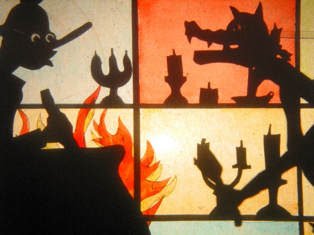 I si bé els aparells de retroprojecció els podem considerar com una incorporació al món de l’espectacle relativament recent, -tant en el teatre de titelles i ombres com en el teatre d’actors- no és menys cert que a l’hora de tenir en compte la seva incidència concreta en el teatre d’ombres, els podem considerar cosins germans d’un aparell tan antic que avui ja és història…i que no és altre que la famosa llanterna màgica, capaç d’exposar imatges acolorides.