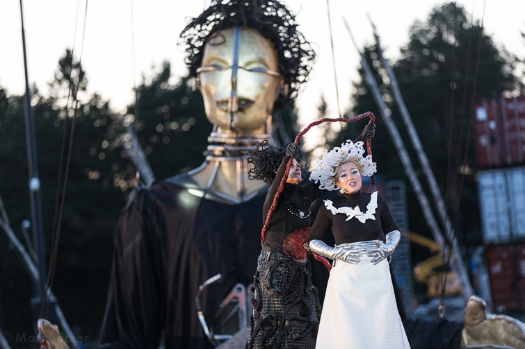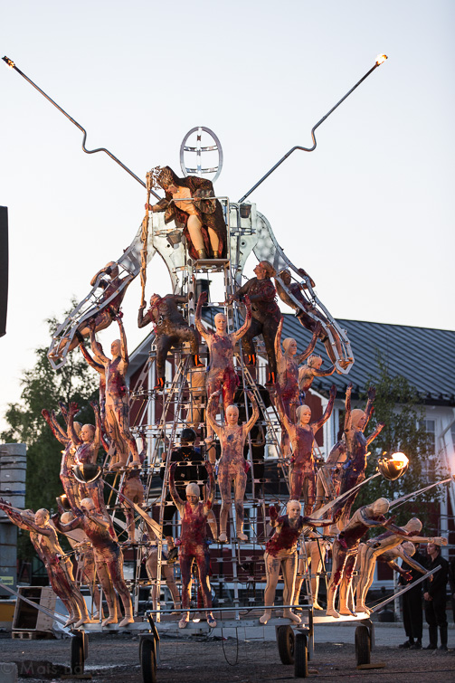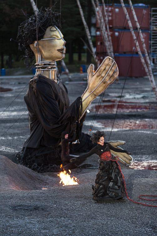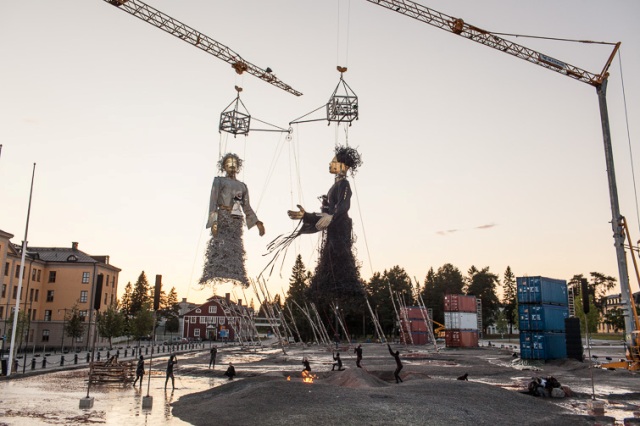 No vam poder assistir a aquesta representació tan singular, amb una important presència de gegantescos titelles moguts amb imponents grues, però sí hem volgut deixar-ne constància a Putxinel·li, amb les reveladores imatges del fotògraf Mats Backer. També hem cregut convenient citar alguns fragments de les critiques publicades sobre l’espectacle, perquè el lector se’n pugui fer una idea: