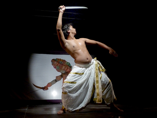 Una història tràgica d’amor. Exiliat pel seu pare, el príncep Ram és enviat a un llarg viatge lluny de casa, la seva esposa Sita i el germà Lakshman. Sita és segrestada i empresonada per Ravan, rei de Lanka. Quan Ram és vora l’oceà, se sent impotent i desitja creuar-lo cap a l’estimada Sita. Els titellaires l’ajuden a projectar desitjos amb la màscara del súperheroi Hanuman que el transforma en un poderós simi per saltar l’oceà fins arribar a Sita. Al viatge i després de la guerra amb Ravan, Ram esdevé rei i ha de decidir entre el tro i l’amor a l’ esposa. Espectacle sense text.