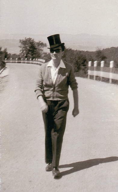 Joan Brossa a la carretera de la Rabassada. Anys 50. Fotografia Santiago Farré