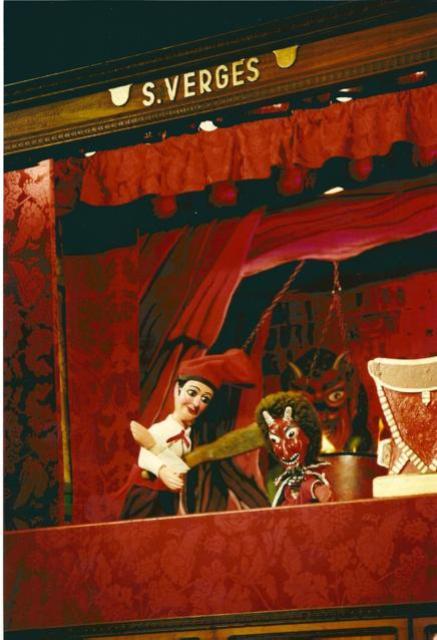 El Dimoni, abans i ara, amb una presència constant en els castellets d’arreu. Els històrics Titelles Vergés, en una tradicional escena de l’infern