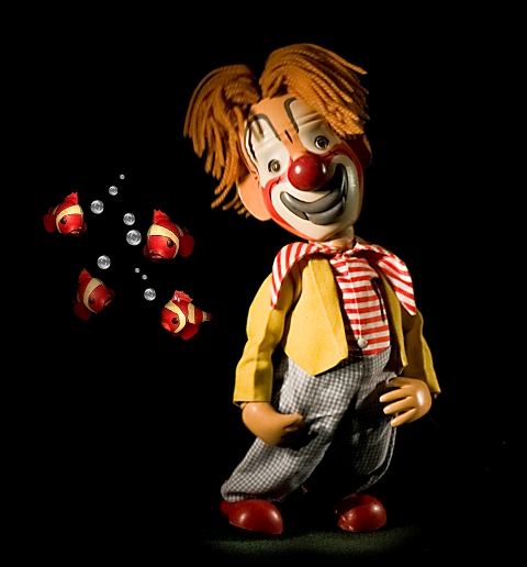 Monsieur Loyal, convoca sobre la pista les cascades d’alegria d’uns vells pallassos de fusta. Els peixos pallasso ens condueixen a una altra dimensió, convertint-se en els mítics Fratellini, Antonet, Grock, Rivel i Popov. Celofán és el seu tramoista i Marcelo acudeix a la cita amb el seu paraigües La màgia i el il·lusionisme de Chand Pasha ens transportaran a l’Orient Llunyà.