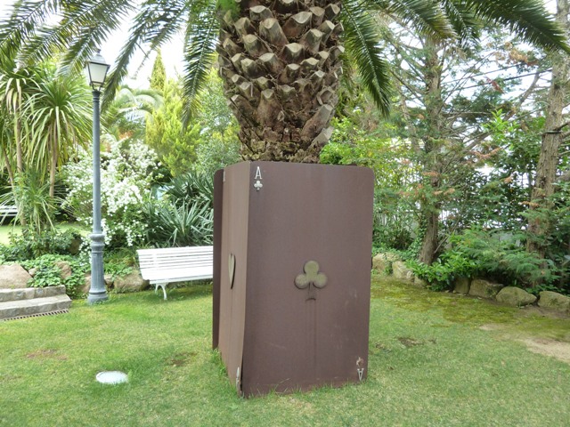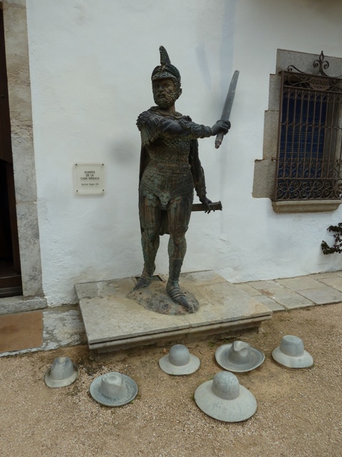 Sortim i ens dirigim a la casa. A l’entrada, davant la porta, una estàtua de bronze d’un cavaller medieval ens amenaça amb l’espasa. Al seu voltant, una pluja de barrets. Els de tots aquells que han perdut els caps per no haver sabut guardar els secrets de la màgia… Un advertiment habitual de qualsevol iniciació…