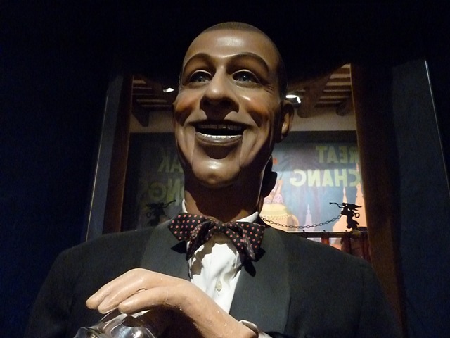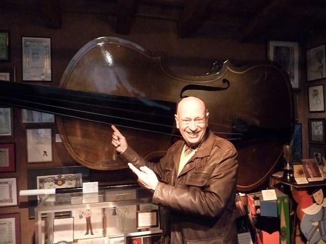 Potser per marcar aquest contrapunt perceptiu, un contrabaix gegant, el més gran del món, segons ens indica el nostre guia, domina la sala. Una mà surt d’un dels forat obscurs de l’instrument: encara que no es belluga, sabem que marca la respiració de la sala. Amb la boca oberta, anem mirant els detalls: el triler autòmat a la caixa de vidre, la ballarina que balla sobre una cadira, una cistella de bambú plena d’espases que la travessen, una caixa vermella d’impossible sortida utilitzada pels escapistes, a la paret, un infinit de premis emmarcats que il·lustren la vertiginosa carrera d’aquest mag que solia conduir per les ciutats amb els ulls tapats…
