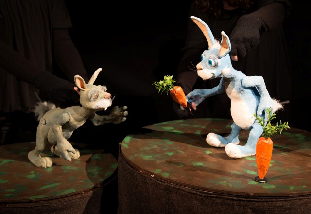 Va ser un plaer veure el treball d’aquesta companyia veterana que tants espectacles importants ha donat al mapa titellaire de Catalunya. En aquest cas, es tracta d’una proposta de la part femenina del grup, constituïda per Esther Cabacés i Mireia Peña, amb direcció de Nartxi Azcargorta, dirigida al nens més petits. Una història de conills que d’alguna manera tracta el tema de l’aneguet lleig, que aquí es concreta en el conillet Cotó que té una orella recta i l’altra caiguda. Una anomalia que el diferencia dels seus companys i que per això és objecte de sorna i de mensypreu o bullying.