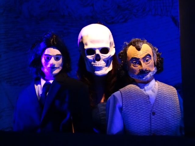 En efecte, crec que en aquest aspecte els dos responsables de ‘Ella i els Arquitectes’ l’han encertat, en especial en duplicar els tres personatges principals amb els seus dobles: aquest emmirallament, només apuntat en l’obra però ben visible, al cap i a la fi, pels espectadors, és una de les millors maneres d’obrir-se ‘al món del costat’, que és el món que hi ha després de la mort o més enllà de la vida i de la mort. Així ho han fet la majoria de les tradicions titellaires del món, en les que els seus personatges acostumen a ser habitants de móns mitològics, siguin déus, esperits de morts o de la natura, dimonis, monstres o altres éssers del repertori imaginari.