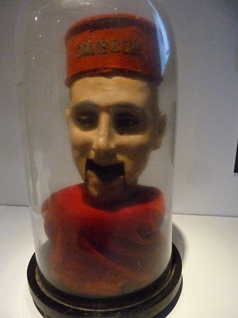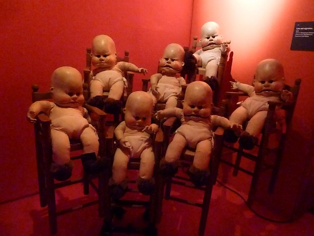 Faig el pas a la setena porta, la qual aboca el visitant a convertir-se més directament en observador de sí mateix, tot contemplant peces que tenen relació directa o propera amb el món de la ventrilòquia, amb la idea de la robòtica.