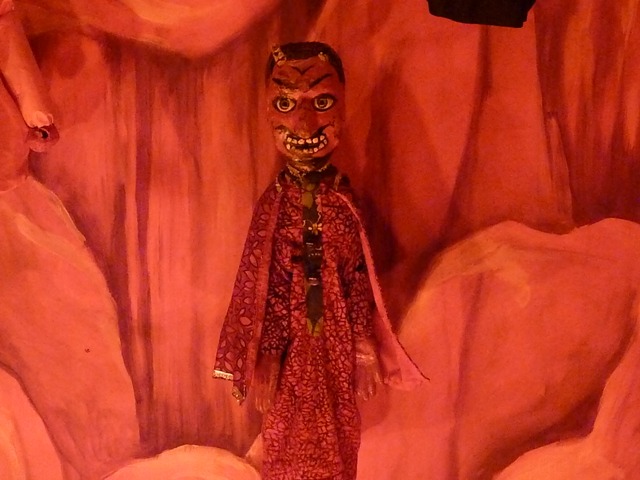 Un complet i variat conjunt de dimonis –aquesta figura tan arrelada i tan constant en la cultura del teatre titellaire- integren la troupe infernal de l’exposició. Fotografia de Ping Lin.