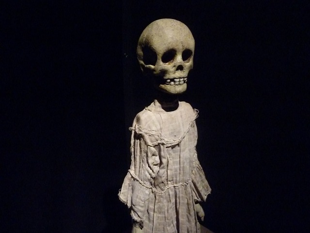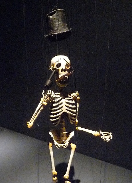 La porta cinquena que traspasso a continuació, és la de la mort. Un altre tema molt present en el món dels titelles. M’aturo davant d’una figureta cedida pel Museu Etnològic.
