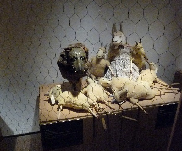 De sobte, el llop es belluga! Té moviment! Al llarg del recorregut podré comprovar que com aquest, hi ha uns quants titelles que de tant en tant i per sorpresa, es belluguen mitjançant un mecanisme. Dedueixo que els responsables de Figures del desdoblament han considerat que aquests moviments serveixen per a despertar –en la consciència del que visita l’exposició- l’energia potencial dels altres titelles, els que no es belluguen. Un considerable encert de posada en escena!