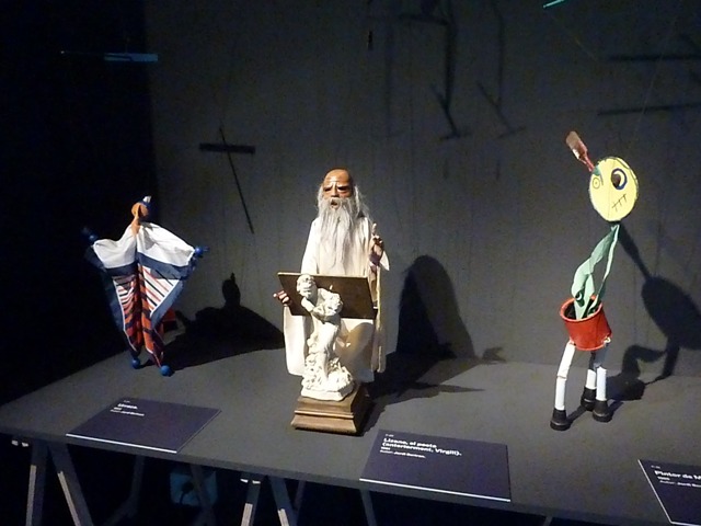 L’exposició, ara sí, finalitza i arribo a un espai més ampli, que s’anomena La plaça. Entenc que vol ser un símbol dels carrers i les places, de l’espai públic on el teatre de titelles sempre hi ha tingut una presència considerable. Fins i tot es podria dir, que una presència imprescindible.