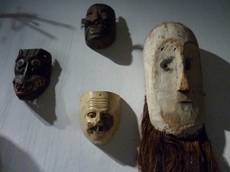 Màscara africana i tres màscares mexicanes. Fons del Museu Etnològic de Barcelona.