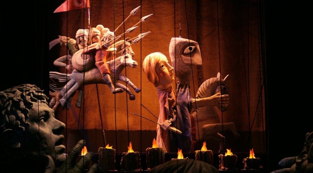 Destacable la posada en escena, amb unes marionetes gegants que superen els set metres d’alçada, concebudes per la direcció escènica i l’escenografia d’Enrique Lanz.