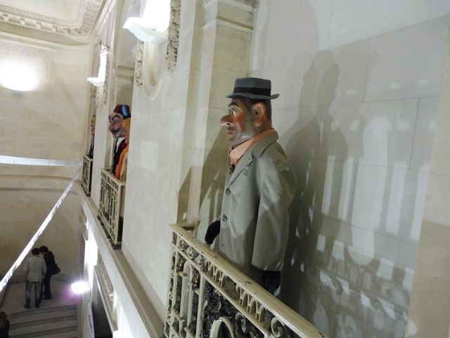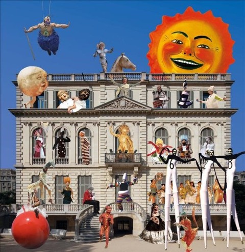 Com no podia ser d’una altra manera, els Comediants es van fer amos de l’edifici, de la façana per a la inauguració, i ja a l’interior, de la seva escala que puja al pis de dalt: per les finestres, els forats, els racons i les baranes d’aquell espai noble, treuen el cap i s’exhibeixen per rebre al públic una munió de figures, gegantons i capgrossos, que durant quaranta anys han acompanyat a la colla de Canet. Personatges populars que han ballat i actuat per milers d’escenaris de tot el món i que ara vetllen l’exposició amb la felicitat estampada als seus rostres.