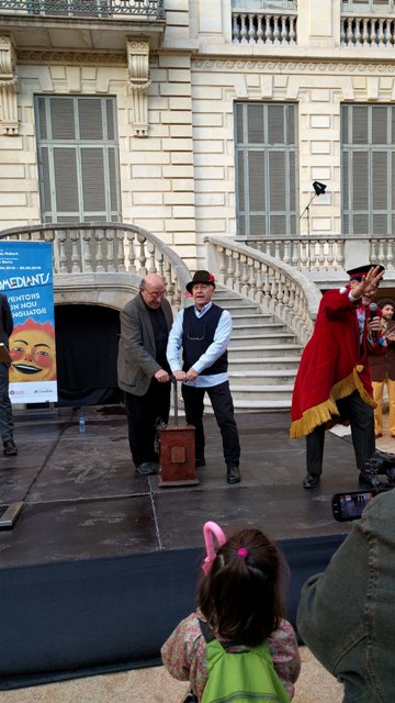 Vet aquí una exposició important i entranyable, la de la companyia de Canet Els Comediants, que mostra en una molt treballada exposició un compendi de la seva densa i prolífica carrera artística. Va ser el dijous 21 d’abril, a les 19h de la tarda, quan s’inaugurà amb petards, coets, disfresses, cercaviles, polítics, parlaments i algunes màscares movent-se pels jardins del Palau Robert, l’exposició, presentada pel seu director, Joan Font, i per l’arquitecte artífex de l’espai expositiu: Dani freixes.