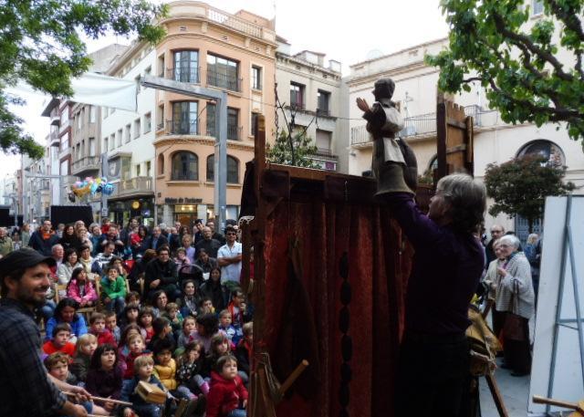 Arrancava La Passada prop de la Plaça de la Corona, on s’hi havien instal·lat els divertits i atractius enginys de Cal Titella, de Galiot Teatre (veure aquí), pensats perquè els nens els puguin manipular amb tota llibertat, i, un cop arribats al Museu de Granollers (on també hi havia una bonica exposició de titelles que tractarem després) començaven les parades dels diferents titellaires, amb un ordre d’actuació molt controlat.