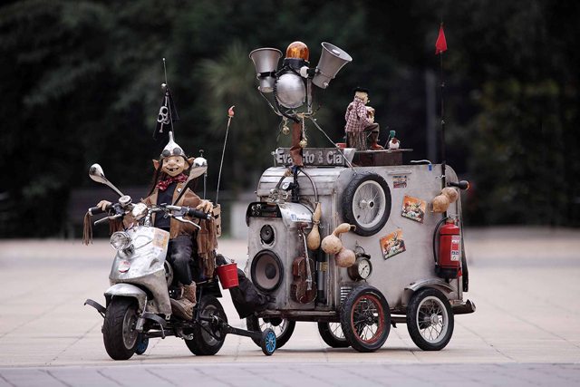 Animant el carrer, anava passant aquest personatge tan aconseguit de Txo Titelles, l’Evaristo i Cia, un titella que va en moto arrossegant un remolc, ell tot sol, sense que enlloc es vagi qui el manipula o qui el controla. Titella robotitzat per Nartxi Azkargorta, inventor i titellaire, que va sorprendre i meravellar al públic. (veure aquí)
