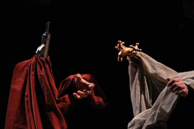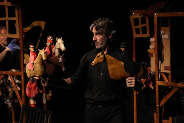 Vet aquí un dels èxits més sonats dels últims anys que aquest cronista encara no havia tingut l’oportunitat de veure. Una verdadera sort per a mi, ja que vaig poder assistir a l’espectacle amb la virginitat sempre desitjable de la primera vegada. Un espectacle que es va crear amb un equip fa quinze anys (composat per Jordi Bertran, Miquel Gallardo, Olivier Benoit i Eva Hibernia) i que ara torna a girar en una nova producció de la companyia Pelmànec que dirigeix Miquel Gallardo, un eminent actor i titellaire que els últims anys s’ha prodigat pels escenaris del món amb espectacles de primera categoria i un reconeixement internacional. Obres com Don Juan o Diagnòstic Hamlet (veure aquí) han demostrat la mestria d’aquest actor en la difícil disciplina del desdoblament escènic en un titella, un tipus d’exercici que només comptats titellaires arriben a acomplir amb èxit, en exigir unes dots en les facetes d’interpretació realment dobles i que han de ser excepcionals perquè funcionin bé.