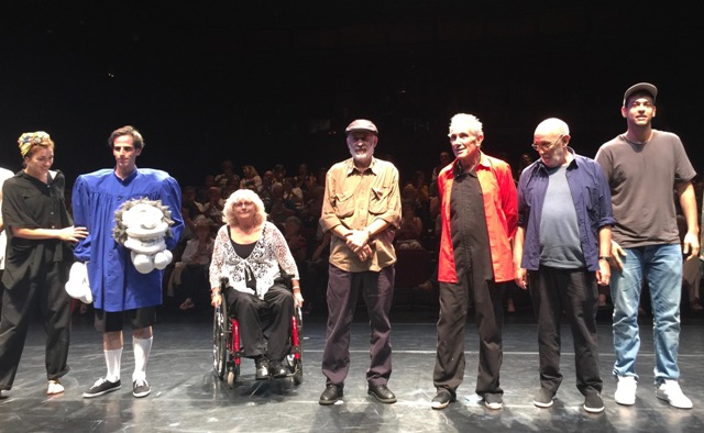 I tanmateix, és en la part posterior al mirall -definit amb el títol de Not to be or not to be, eis a questão- quan l’espectacle s’encarrila per uns camins de ritme teatral més d’acord a la convenció, amb una successió de diverses escenes, amb números que podríem definir com d’un cabaret poètic i visual. És aquí on la llarga experiència que té el titellaire català surt a relluir, amb números molt aconseguits de manipulació a càrrec dels intèrprets, tots ells impecables. Són: Al Víctor, Andreu Martínez, Isabel Pla, Laura Calvet i Xavi Estrada. Un gran encert haver escollit l’Al Víctor com l’actor que parla: sempre l’he considerat com una de les millors veus del teatre català que malauradament no es prodiga gaire, potser perquè el seu fort és el castellà, no ho sé. Sentir-lo és sempre un plaer, toqui el registre que toqui. Una altra troballa és Isabel Pla, que sembla una d’aquestes actrius o ballarines mutants que de tant en tant veus als escenaris, realment com si provingués d’un altre planeta, capaç de centrar la mirada dels espectadors, que no saben a quina categoria situar-la. El seu paper de monstre de cabells blancs és absolutament impactant. Però és tot el conjunt dels intèrprets el que va donar la nota molt alta, amb una perfecte resolució dels personatges.