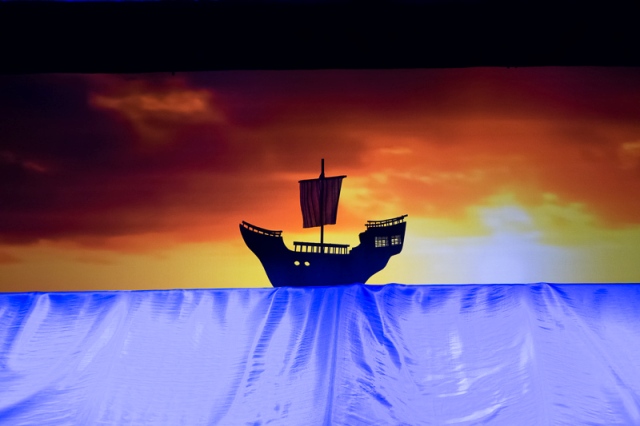Com és propi en la companyia, destaca el muntatge per la seva brillant escenografia, amb un vaixell de fusta molt vistós, i un joc de cortines blaves en moviment que representa el mar, amb un ciclorama de fons animat per un vídeo que projecte les variacions del cel, des de les tempestats que centren l’argument de la història fins a una bonica sortida del sol. Una escenografia firmada pel gran artista escenògraf José Menchero, un habitual de la companyia. Igualment, brilla la manipulació impecable dels titelles, una de les marques pròpies de la casa.