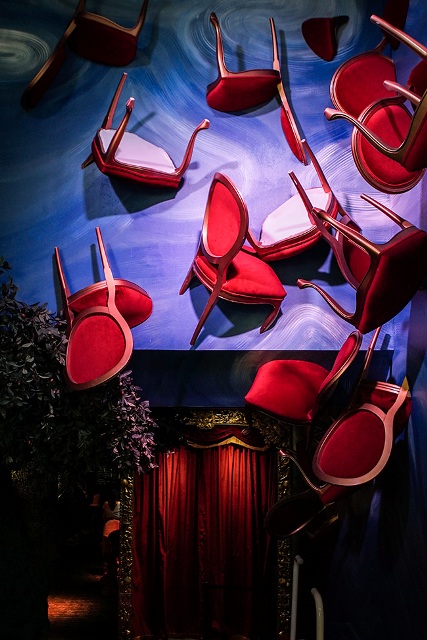 Sembla que ens haguem perdut als soterranis de l’òpera on algun geni o fantasma esperitat ha reciclat les escenografies de mil òperes en un decorat surrealista per servir copes i picar menges triades. La música no és tronant, cosa que permet conversar, una de les gràcies del lloc, i desconec si en algunes hores es serveixen fragments sonors d’òperes del repertori. Espero que sí. Un espera trobar-se a alguna cantant encara amb la disfressa escapada de l’escenari per algun passadís misteriós, prenent una copa, mentre espera que l’avisin per sortir de nou a l’escenari.